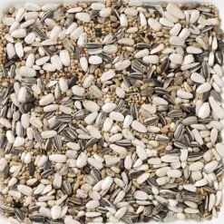 Tournesols blancs, cardi, tournesols striés, sarrasin, avoine pelée, millet blanc, raisins, graines de citrouille, blé soufflé, morceaux de carottes, flocons de pois, mais popcorn, noix de cèdre, tranches de bananes, avoine coupée, dari blanc, sorgho roux, paddy riz, alpistes, morceaux de noix