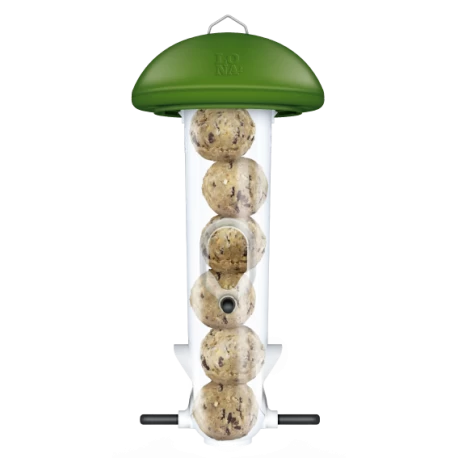 LONA M6 est un silo d’alimentation pour oiseaux avec 2 entrées d’alimentation. Pour les petits oiseaux de jardin comme les mésanges, les pinsons, les moineaux et les espèces similaires. Facile à fixer à un piquet, tronc d’arbre, clôture, mur ou pergola. Idéal pour administrer des boules de graisse aux oiseaux sauvages.