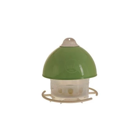 Il est fait de plastique transparent et permet à de nombreux oiseaux de se nourrir en même temps. Les petits trous de passage ne privilégient que les petits oiseaux, évitant l’assaut des pigeons, des tourterelles, des pies et souris ou rats.