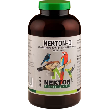 NEKTON-Q contient, en proportions égales, d‘autres vitamines, oligo-éléments et acides aminés, lesquels jouent un rôle essentiel dans le déroulement du métabolisme intermédiaire. NEKTON-Q ne doit être utilisé qu‘en cas de besoin dans le cadre d‘une maladie. Durant l‘utilisation, aucune autre préparation vitaminée ne doit être administrée. NEKTON-Q est soluble dans l‘eau froide et doit être administré chaque jour au travers de l‘eau à boire ou mélangé dans la pâtée.