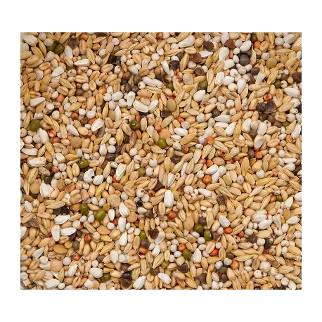 Froment blanc 26,5%, dari extra blanc 17,5%, orge 16%, cardi 8%, riz paddy 8%, vesces 5%, lentilles 4%, sorgho extra rouge 4%, kadjang idjoe 3,5%, sarrasin 2,5%, sorgho rouge 2,5%, avoine pelée 1,5%, graine de lin 1%.