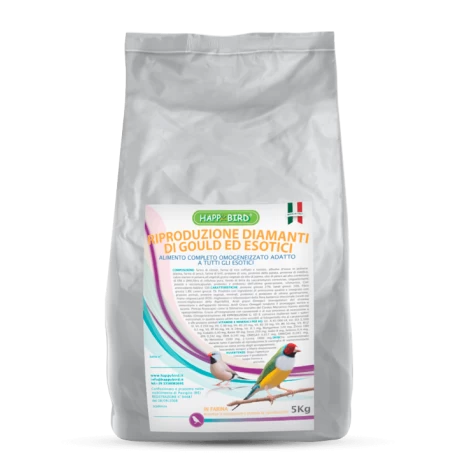 Aliment complet à utiliser durant la période de reproduction des Diamants de Goulds et les exotiques. (Mandarins, Bavette, Moineaux, Bichnov, ect..).